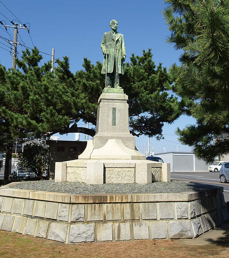 濱口吉兵衛銅像 ヒゲタ醤油社長濱口吉兵衛は、1910年(明治43)3月の海難事故の遺族の訴えに心を動かされ、漁港整備を決意し、1920年(大正9)に衆議院議員になりました。その後、1925年(大正14)から銚子漁港の整備事業を開始しました。 新生浜公園内 住所 千葉県銚子市新生町1丁目